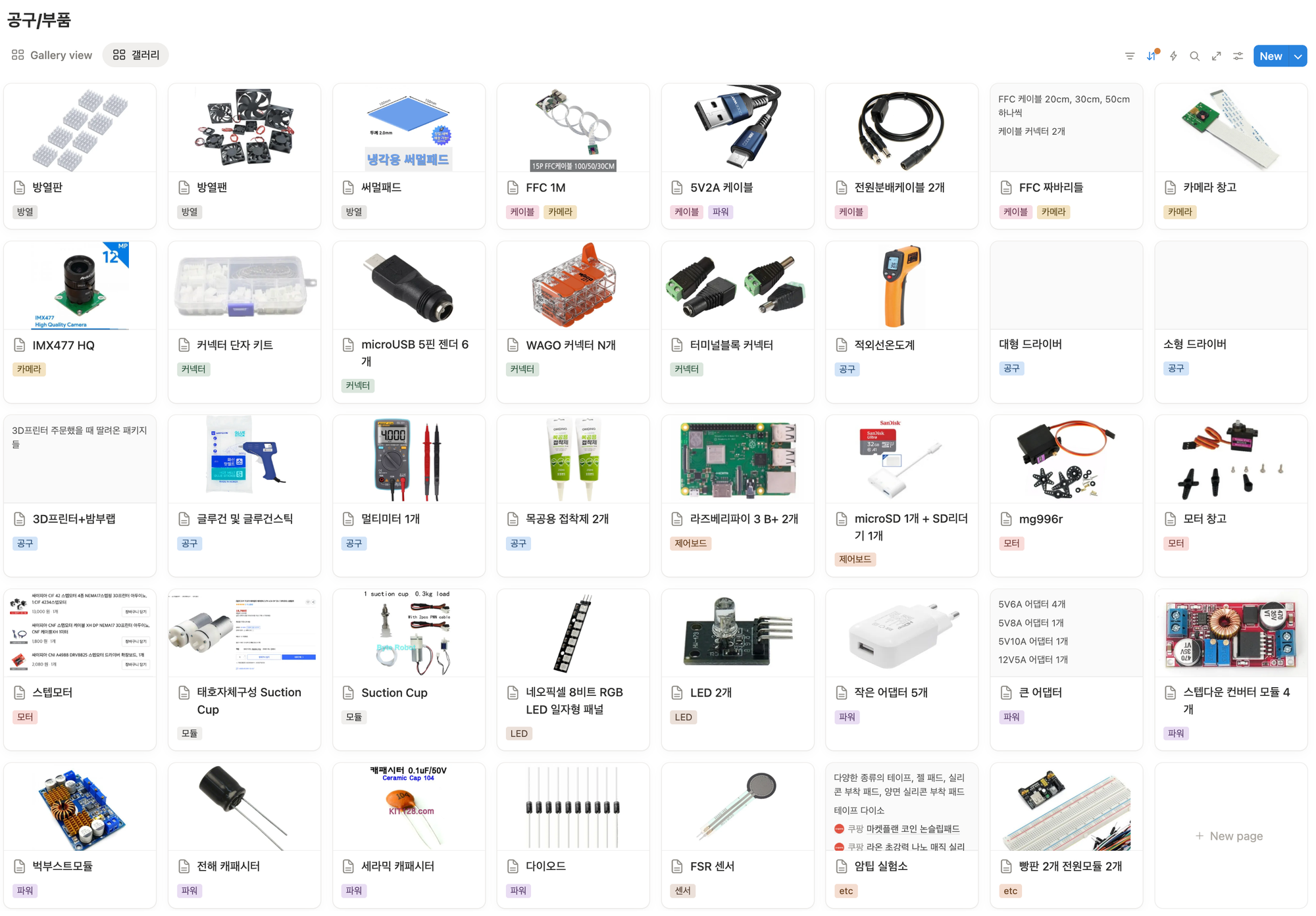 방열, 카메라, 케이블, 커넥터, 공구, 제어보드, 모터, 모듈, LED, 파워 등 여러 분야로 이것저것 참 많이도 샀다.