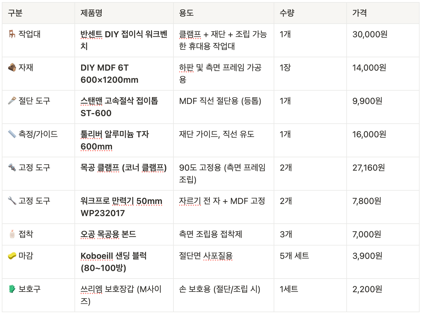 내일부터 목공소 개시다. Plate를 만들기 위해 간단한 목공소를 차렸다. 딱 12만원 정도 썼다.
