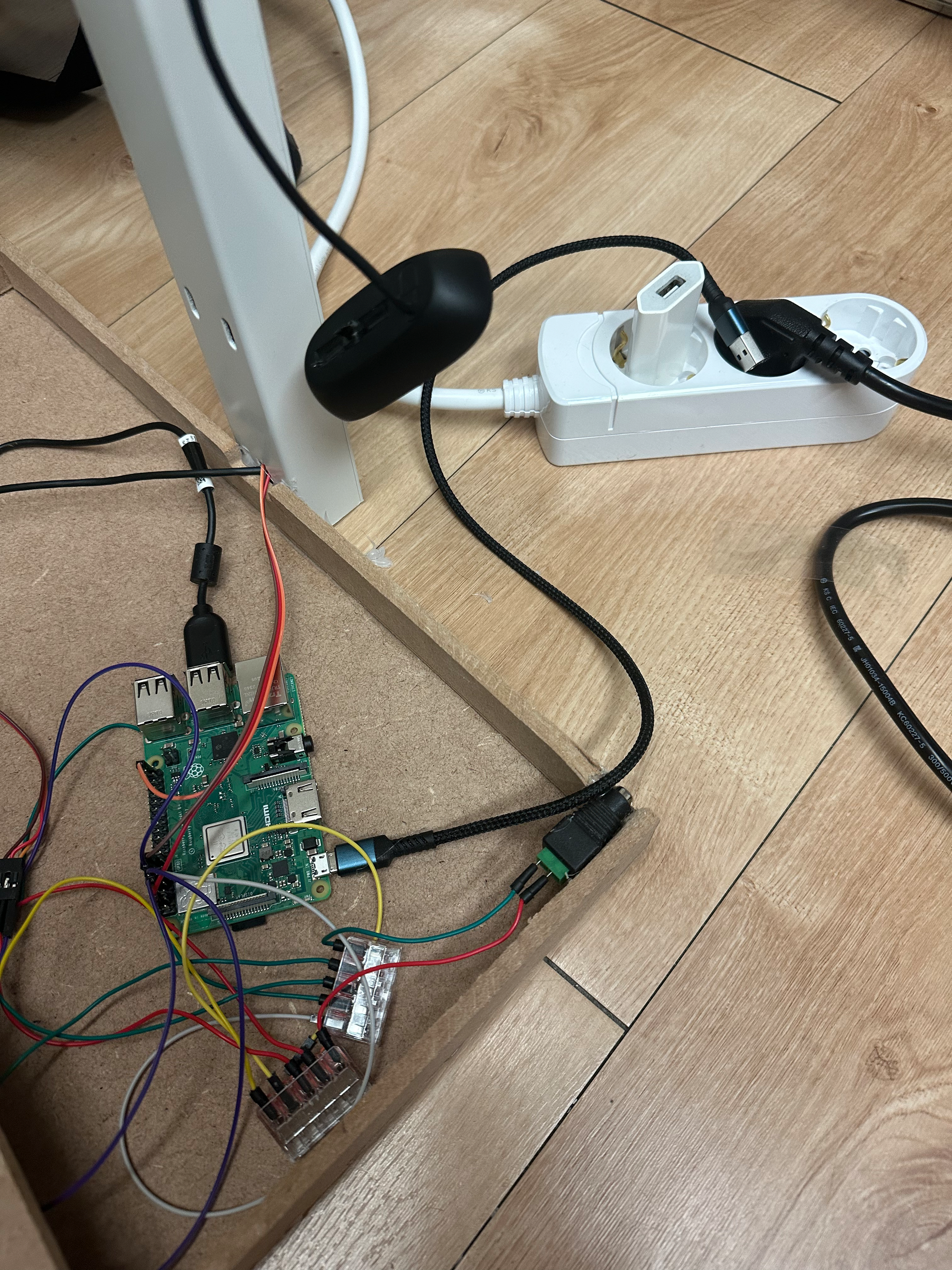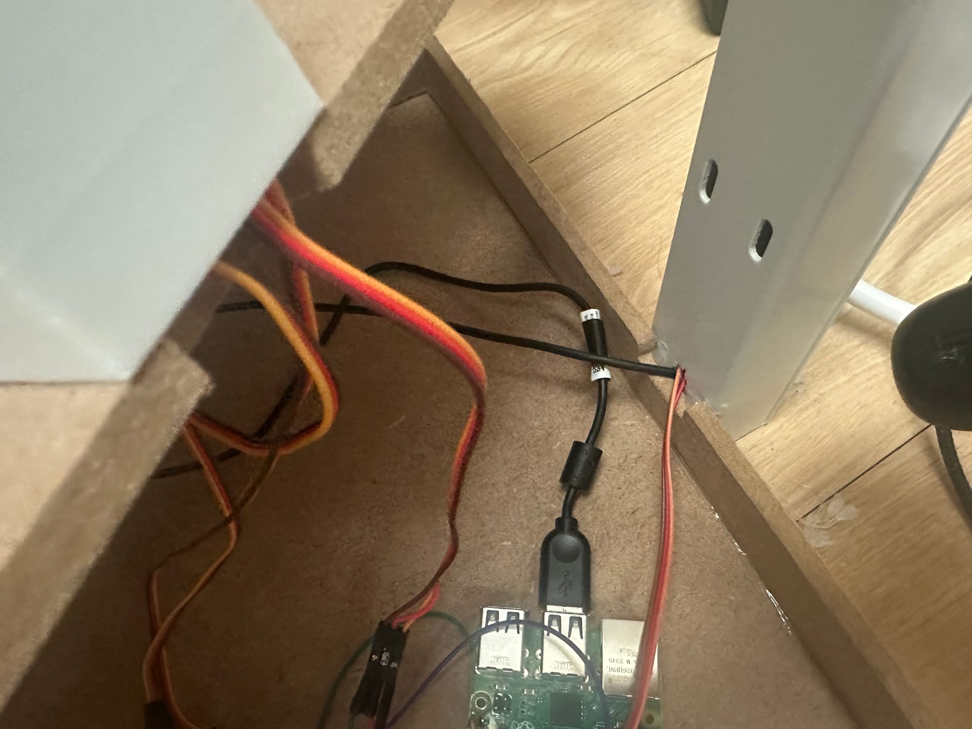 파워 연결하는 곳을 글루건으로 딱 붙였다. 저 커넥터가 공중에 떠있는 건 아니고 밑에 받침대도 3D 프린팅해서 고정시켜두었다.