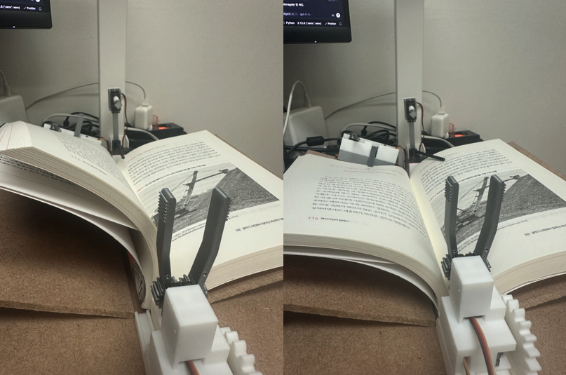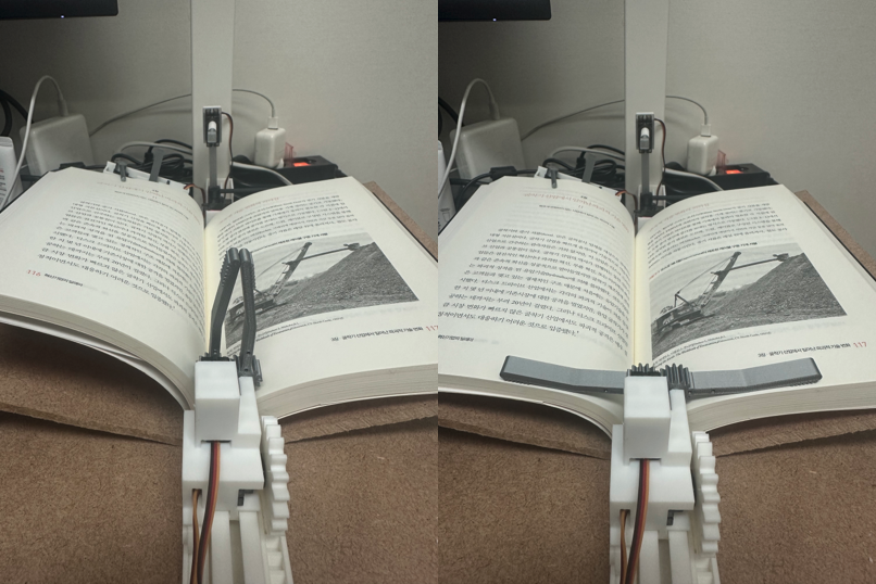 기본적으로는 왼쪽 사진처럼 V Press Arm이 못 들어가는 상태이고 위쪽 암으로 어떻게저렇게 양팔로 꾸욱 눌러주면 들어올 수 있긴 한데 너무 확률적이다. 책 따라 다르고 파워 튀는지 안 튀는지에 따라 다르고 변수가 너무 많다. 어떻게 이것을 안정적으로 제어할 수 있을까?