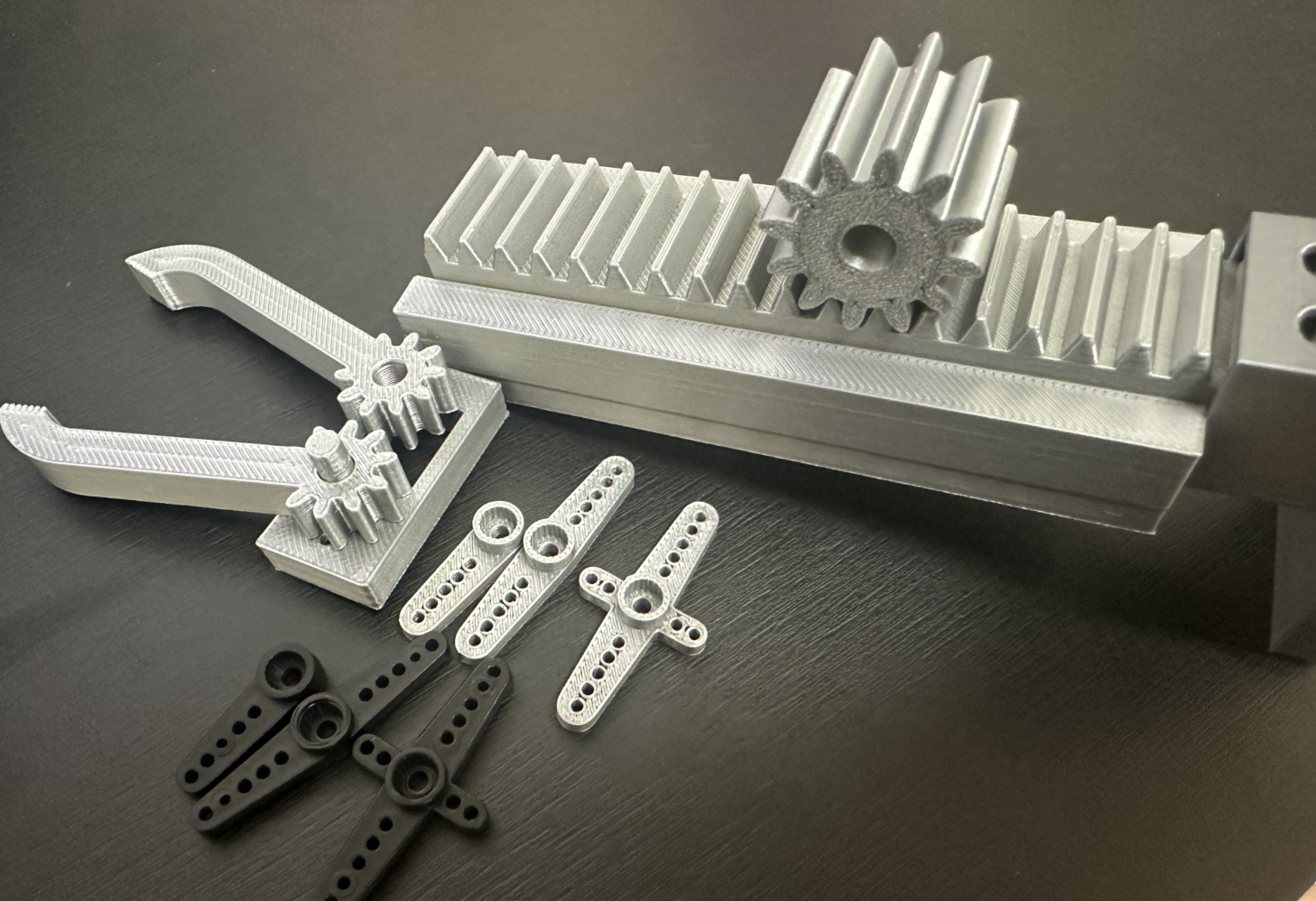오늘 Spine Press Arm과 Spine Press Arm Slider 2개의 시초가 될 기초를 프린트해봤다. 2개 다 아주 잘 동작한다. 키로하면서 처음으로 기계 메커니즘 및 요소에서 설명했던 요소들을 쓴다. 토크의 방향을 바꿔주는 기어와 회전 운동을 직선 운동으로 바꿔주는 랙앤피니언이다. 이거 2개 내 문제에 맞춰서 3D모델링 다 끝내고 자야지. 하단에 있는 서보 혼은 이번에 서보 모터에 억지로 껴넣는 데 지쳐서 저 디테일한 spline을 다시 프린트해봤다. 예전에 다른 모델로 프린트했을 땐 잘 안됐는데 이번에 프린트한거는 쉽게 꽂히고 헛돌지 않았다. 이 spline 그대로 저 기어들의 홈에 맞춰서 만들거다. 3시간 딱 집중해서 이거 다 끝내야지.