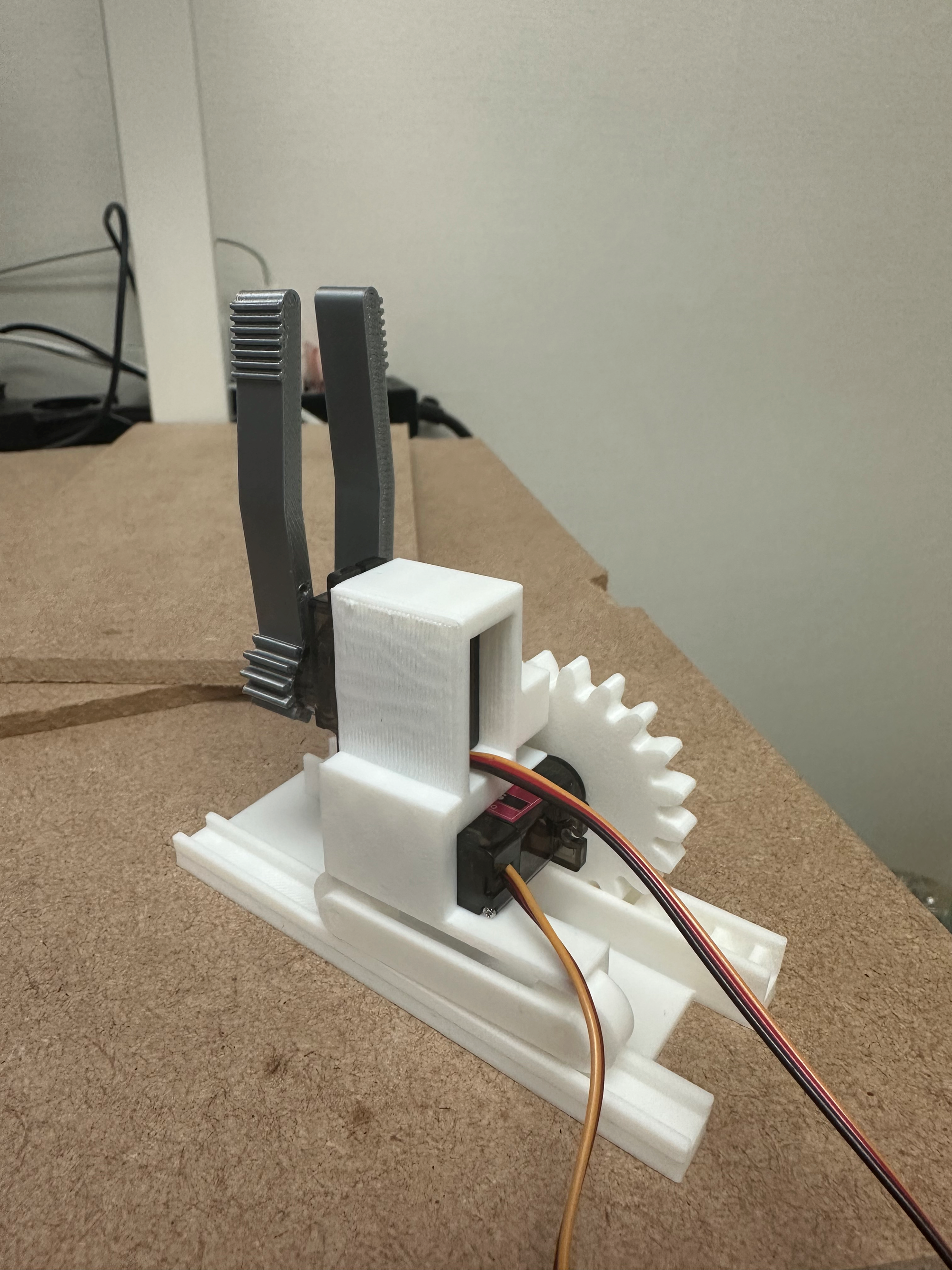 이번에 모델링한 vpress암 하우징이다. 왼쪽 바퀴 레일과 오른쪽 랙피니언까지 아주 잘 맞고 잘 움직인다. 하지만 사소한 이슈가 있는데 앞쪽으로 쏠려버린 무게중심으로 인해 뒷바퀴가 살짝 들려있는 모습을 볼 수 있다. Fusion360에서 이런 물리엔진이 잘 동작했더라면 이걸 프린트하지 않고 알 수 있었을 것이다. (이로 인해 지금 1시간 걸려 다시 프린트하고 있다...)