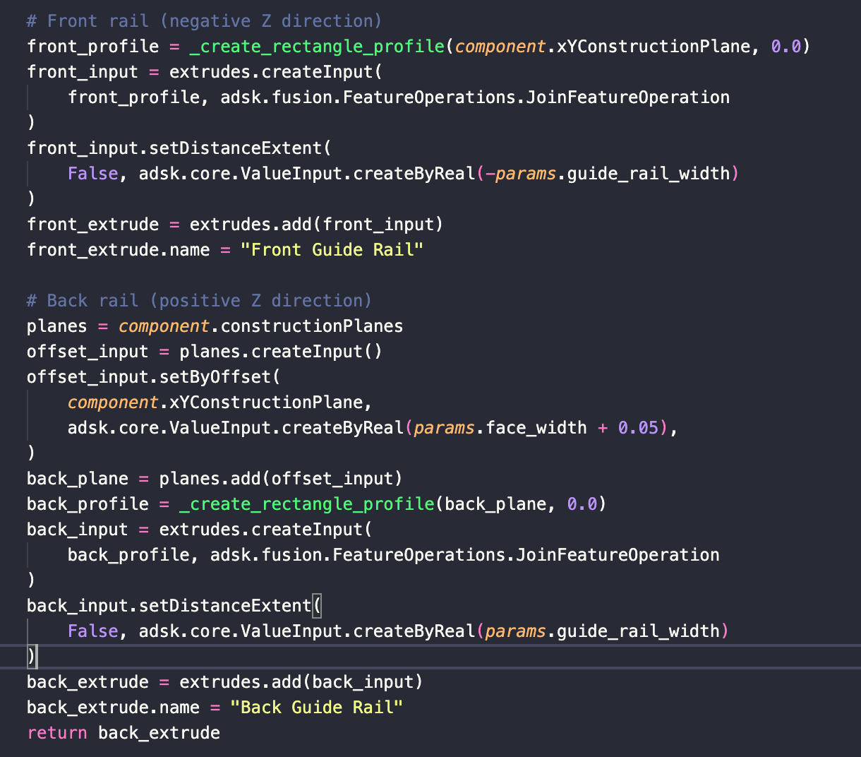 가이드레일 만드는 코드인데 실제 앱에서 내가 하는 행동 하나하나가 하나의 라인으로 바뀌는 개념이다. 해당 행동이 어떤 함수인지 Developer Docs에서 하나하나 다 찾으면서 하는 귀찮음만 빼면 크게 어렵진 않다. 아 그리고 이 코드들은 커서 도움 받기가 매우 어렵다. 커서나 AI는 3D 환경에 대한 이해가 없어서 (당연하다. 실제 물리 세상에 안 살아봤고 말로만 듣고 상상하니 이해가 어려운 게 당연하다.) 코드를 아주 이상하게 짠다. 사실 코드는 잘 짠 것처럼 보이는데 실제로 출력해보면 아예 이상한 출력물이 나온다.
