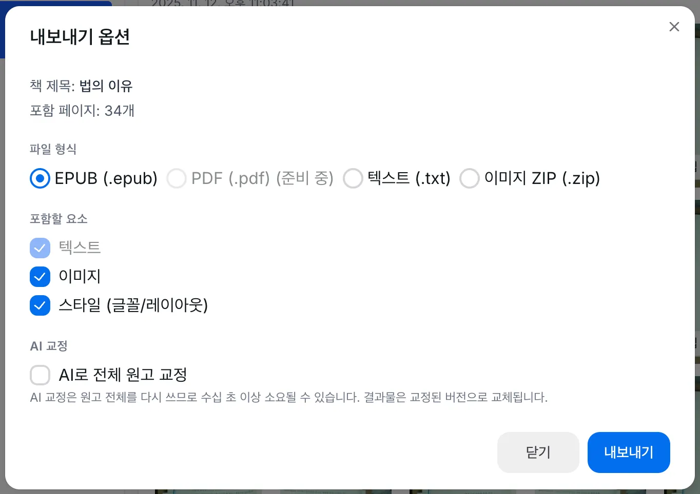 문제: 다양한 형태로 export하고 싶음. document parse만으로 책을 완벽하게 전자책으로 변환하기 어려움.