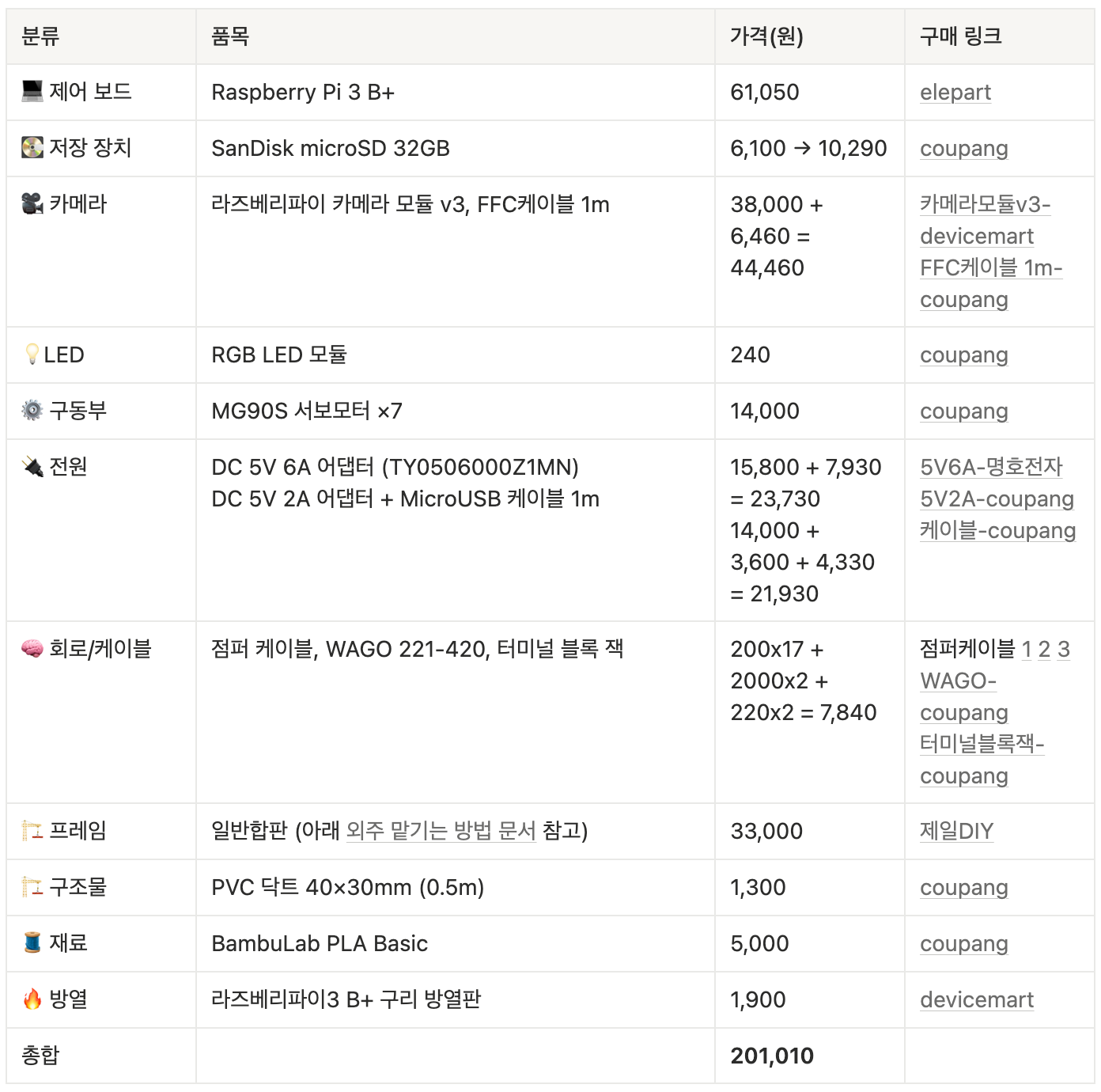 최종적으로 v1.4 BOM을 정리하면 이렇게 되고 원가 20만원을 달성했다!!!