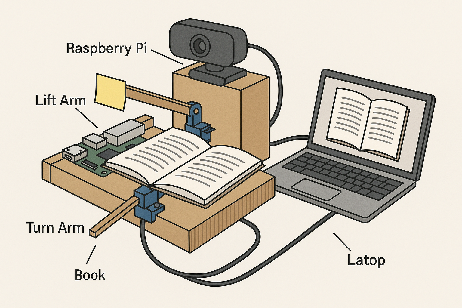 | 📖 책 넘김 | 팔 2개(리프트암;한페이지를 든다, 턴암;페이지를 넘긴다) 로 한 페이지만 정확히 넘긴다 |