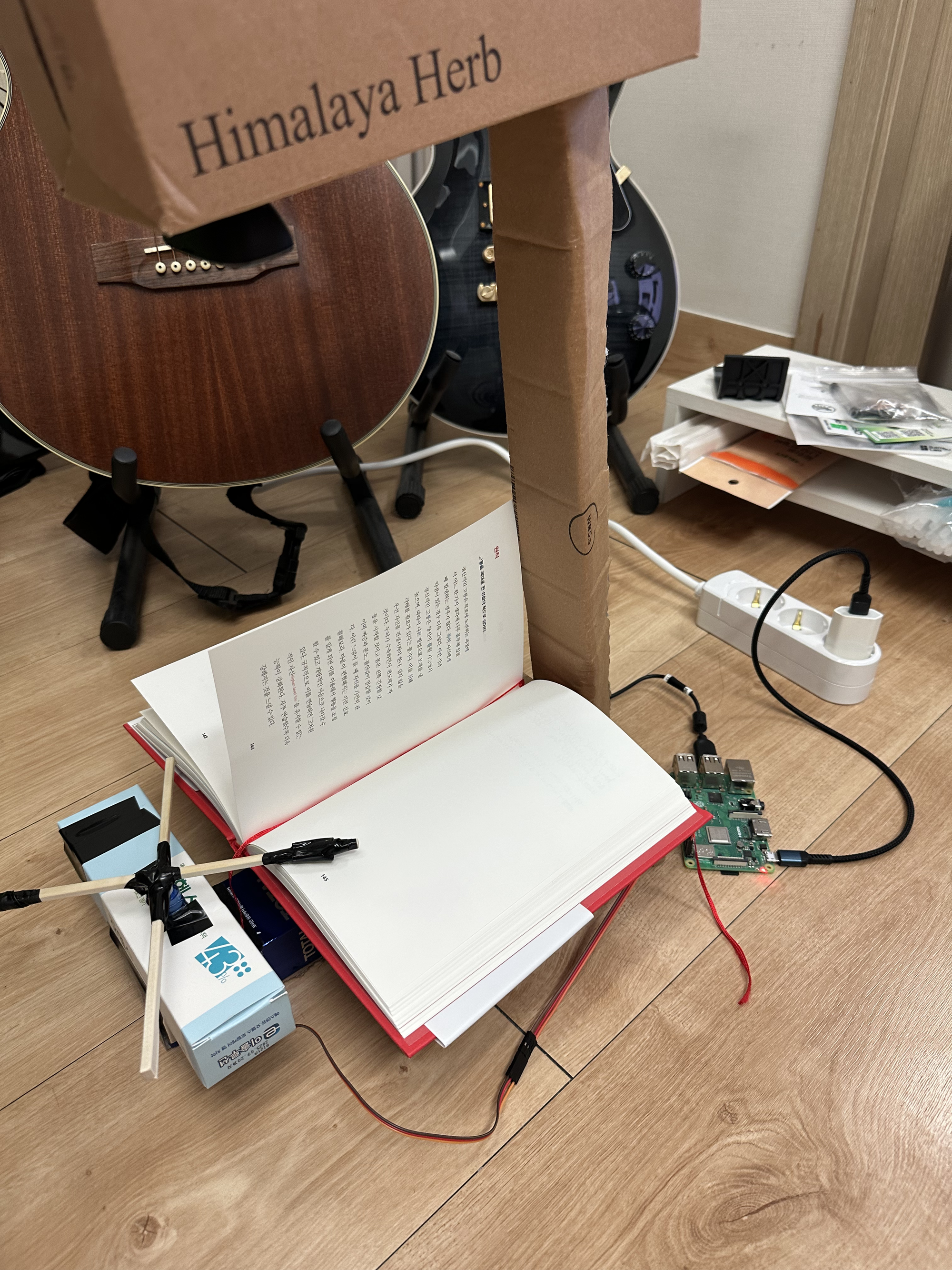 전원 연결 후 라즈베리파이 부팅됨명령 입력 시 리프트암이 종이 들 수 있음이어서 턴암이 종이 한 장을 넘길 수 있음사진 촬영 후 이미지 파일이 microSD에 저장됨microSD를 컴퓨터에 꽂고 전자책으로 변환