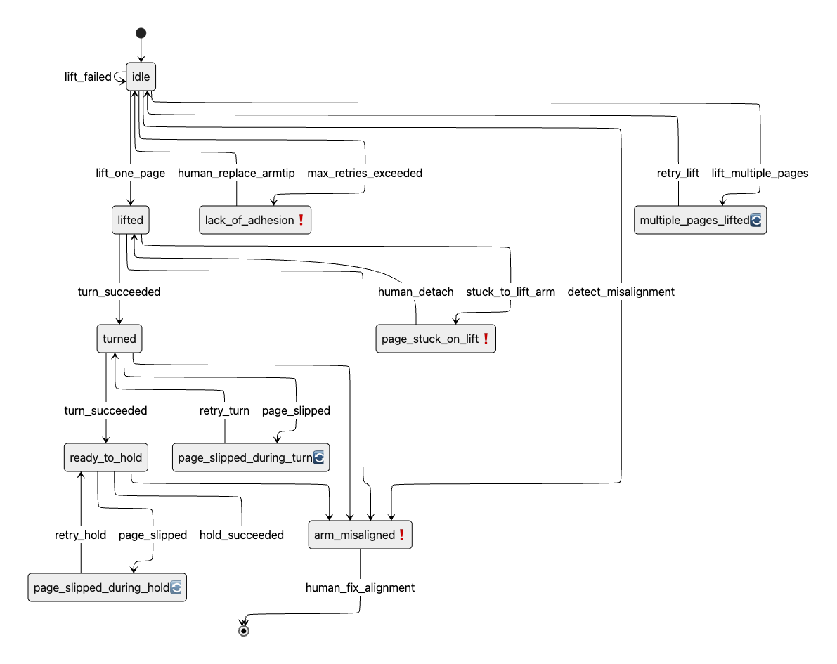 디스크 + 턴암 구조가 아닌 암베이스 (암 3개 모아놓은 곳) + 리프트암 (오른쪽 종이 드는 암) + 턴암 (리프트암이 든 종이를 넘기는 암) + 홀드암 (턴암이 넘긴 종이를 왼쪽에 고정시키는 암) 구조로 변경했다.